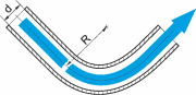 Bei Rohrbogen ist das Verhältnis von Innendurchmesser des Rohrs zum Biegeradius des Rohrs ausschlaggebend: