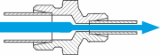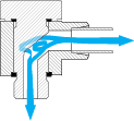 * CONEXA Winkel-Verschraubungen (wie z.B. C-W) werden im Bohrungsschnittpunkt ab der Größe 10-L/12-S ohne Querschnittsverengung gefertigt.