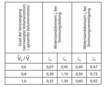 Widerstandsbeiwert für Verzweigungen